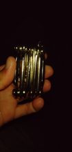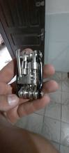 More compact than others in length, but slightly thicker in width. Convenient multitool, squeeze the metal chain, not black as in the photo.