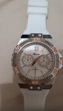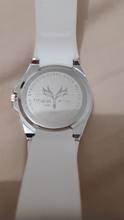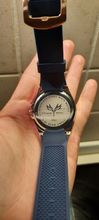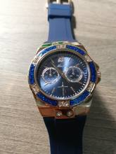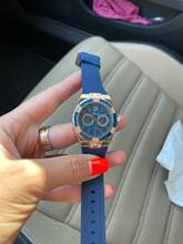 The clock is very beautiful, straight did not expect... Silicone strap, good quality... I recommend the store, thank you very much! Packed in a bag, all whole!