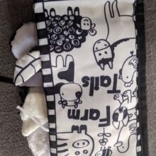 Babies are born with blurred vision, that gradually increased by 3 months, but a black & white contrast images can still stimulate babies’ vision. An absolute must for infant visual development!