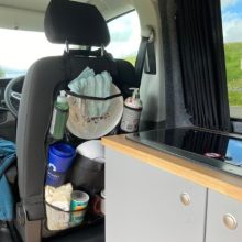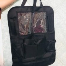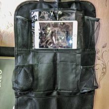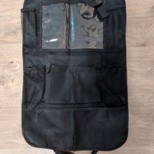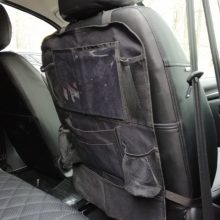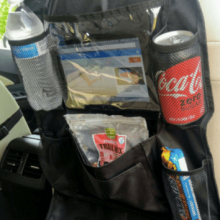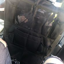 A back-of-the-car seat organizer is great for keeping small and large items in one easy-to-reach spot