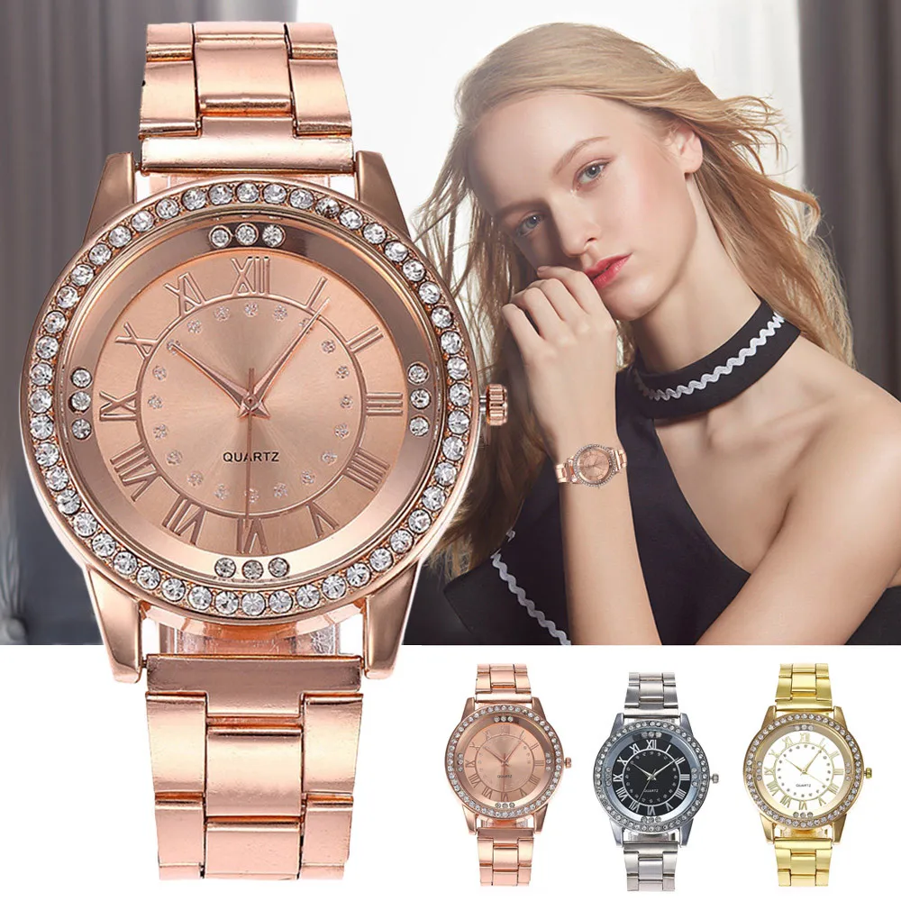 Women’s Men’s Crystal Rhinestone Stainless Steel Analog Quartz Wrist Watch