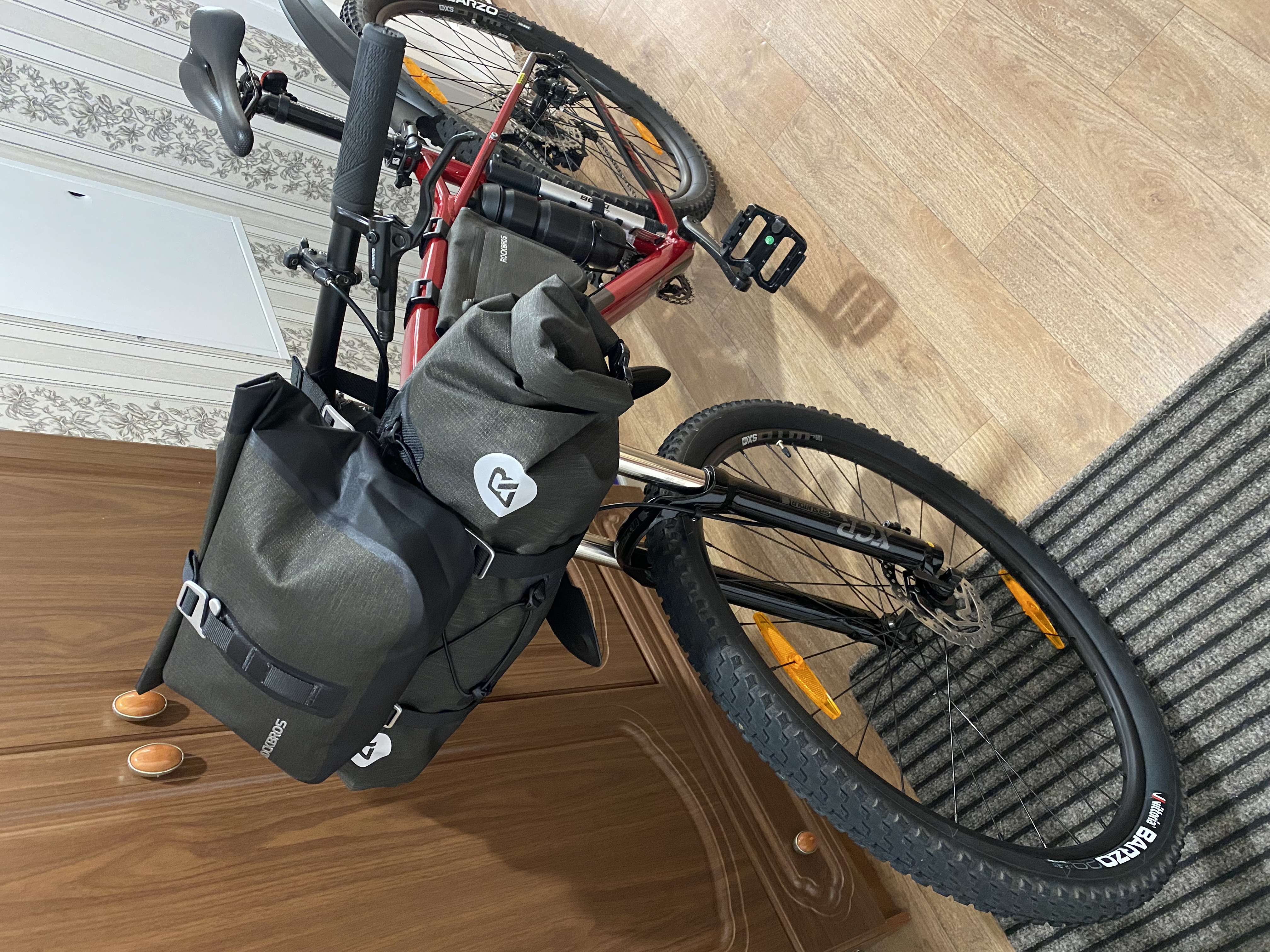 Bags of excellent quality, fastening comfortable and reliable did not think that they are so roomy, the big bag has a lot of fittings and perfectly attached to the steering wheel and will not get over any what I was very afraid of choosing this product. But there is a little trouble, I have 29-inch wheels and a bag of brushes that sticks through the fork pipe, and this problem will be for everyone, so I recommend to buy a new Many thanks to the store, I recommend, everything was done as I asked, and helped me save a good amount of money!