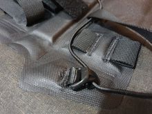 The roll is quite roomy, in the photo it has a double tent with a tambour (without rings and springs-they will go to the frame) and a sleeping mat. On the sides of the 9 m place is full enough for a raincoat or other clothes. Instead of stylized hooks, I would like to see normal fastes, because the hooks tighten almost no way. A small handbag slightly disappointed-I was hoping that it would be more roomy and had ears for the belt over my shoulder. The belt is not included, only slings. On the steering wheel, the roll keeps steady.