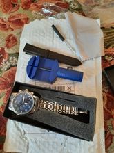 Отличные качественные часы, в посылке был так же ремень, тряпочка и прибор для регулировки длинны браслета. Продавец очень отзывчивый, пришла посылка очень быстро.