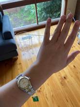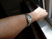 Good watch, look feminine and cute, the dial is not too big, the only hand my thin had to shoot links