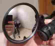 Don't forget to remove the film from it. The mirror is cool, but for me it's uncomfortable: until I found where to attach, so as not to close the review with my own hands