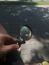 The mirror is comfortable. Contrary to the rinses, you can see not only the hand, but also the road behind you))
