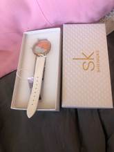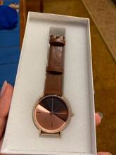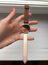 Beautiful watch. come in a branded box with the inscription of the brand. Tags are present. All the watches were covered with a protective film. Look at the hand very gently and feminine! They are small, neat with a beautiful dial! I chose the watch in the version of rosegold, a combination of beige and brown shade. On the dial there is an inscription of the brand, two arrows. The diameter of the dial is 3.6 cm. Strap eco-leather. Work quietly. I'm happy with the hours