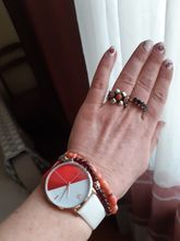 The watch is very beautiful, creative looks different color of the straps, the order came quickly, satisfied, I recommend