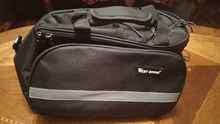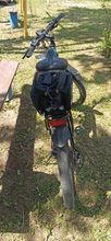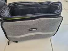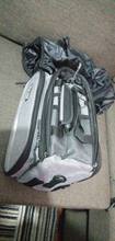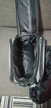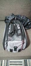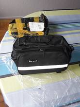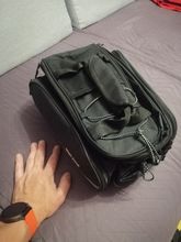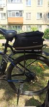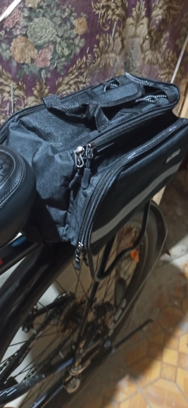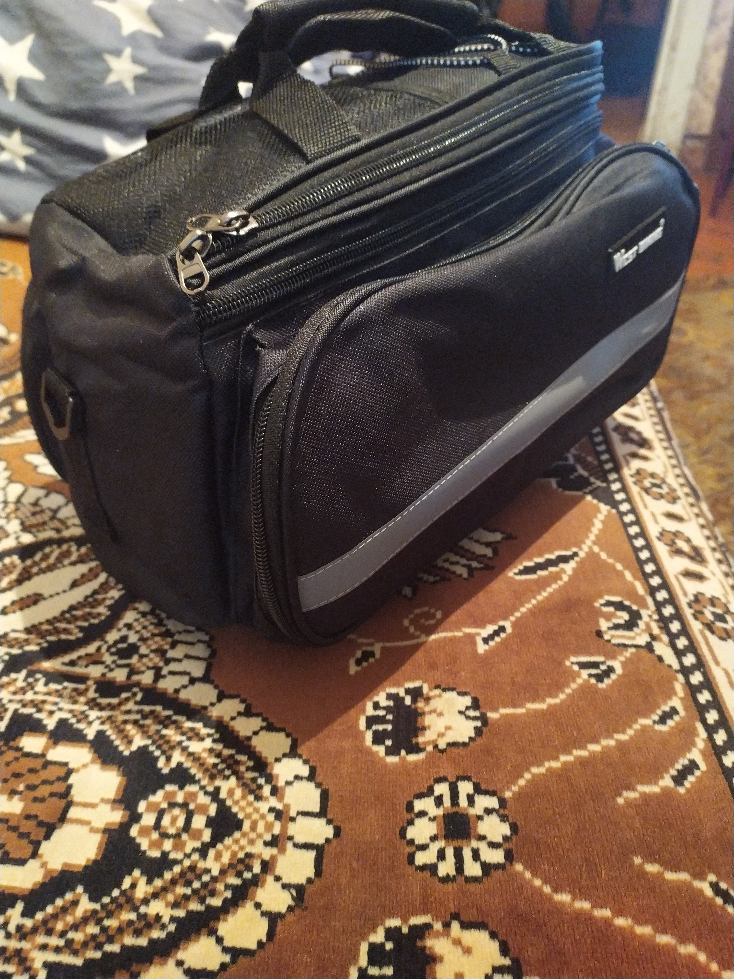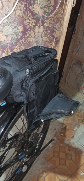 The bag came very quickly. In Ekaterinburg days for 7. sewn qualitatively. Threads do not stick out, seams are not curves. The bag is soft, during transportation it crumpled. Stuffed with towels, for a day the form recovered. On the trunk sits well. Pants do not have fasteners, which can be drawn to the fasteners of the trunk to avoid getting into the spokes. Solved by trunk design