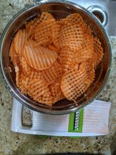 just like the picture. well packed. it does the job, although not as easy as I thought. I tried the wavy fries on sweet potato. it is not easy to cut. on my first try, about half of them look roughly right. the white plastic part also turned orange. maybe it works better on other softer materials.