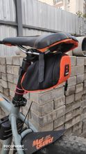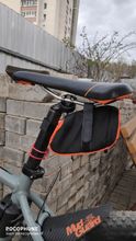 Good bike bag for the seat! Recommend! For such money, she is very good. I took 2 at once on 2 bicycles (identical), naturally went to both bicycles. I have already previously left positive feedback about these bags. I have a mountain bike with wheels of 26 inches, but it will suit for bicycles that are more or less. I only have a rear reflector (cataphku) above the wing had to be removed, but it can be straight to the bag screwed, or another screwed. The handbag opens simply, it is with a zipper. Does not interfere with riding, neat and stylish. Suitable for most cyclists, except for those who are overweight with all expensive products, either an athlete or just an amateur to hang out.