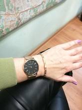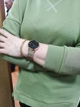 The hours came 7 days before Yekaterinburg. The watch is small, it does not look gromoshko and neat on the hand. The metal is slightly darker than gold, the quality at first glance is good. The strap immediately adjusted, the clasp holds well. In general, hours are happy! Thank you very much to the store for the fast delivery!